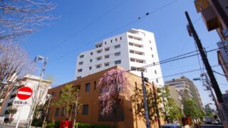 1969年築(昭和44年)、地上8階建て総戸数45戸のマンションです。築年は少し古いけど、管理しっかりしていますよ!オートロックも付いているし、管理人さんも日勤でいます!(管理人さんはすごく良い人でした)不在時に便利な宅配ボックスも完備♪建物メインエントランスまでは階段があり、少し急でした。。でも、1階駐車場側にもオートロック付きの入口がありますのでご安心ください!