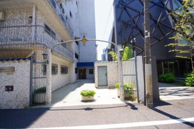 真っ白な吹付の外観、青い瓦屋根、アイアン装飾のヴィンテージマンションの定番「秀和シリーズ」です!1968年築(昭和43年)、地上8階建て総戸数45戸のマンションです。入口のアーチ門が特徴的でかわいらしいです♪エントランスのモザイクタイルも他の秀和ではあまり見られないデザインですね!秀和シリーズやヴィンテージマンション好きな人にリノベして長く住んでほしいマンションです!