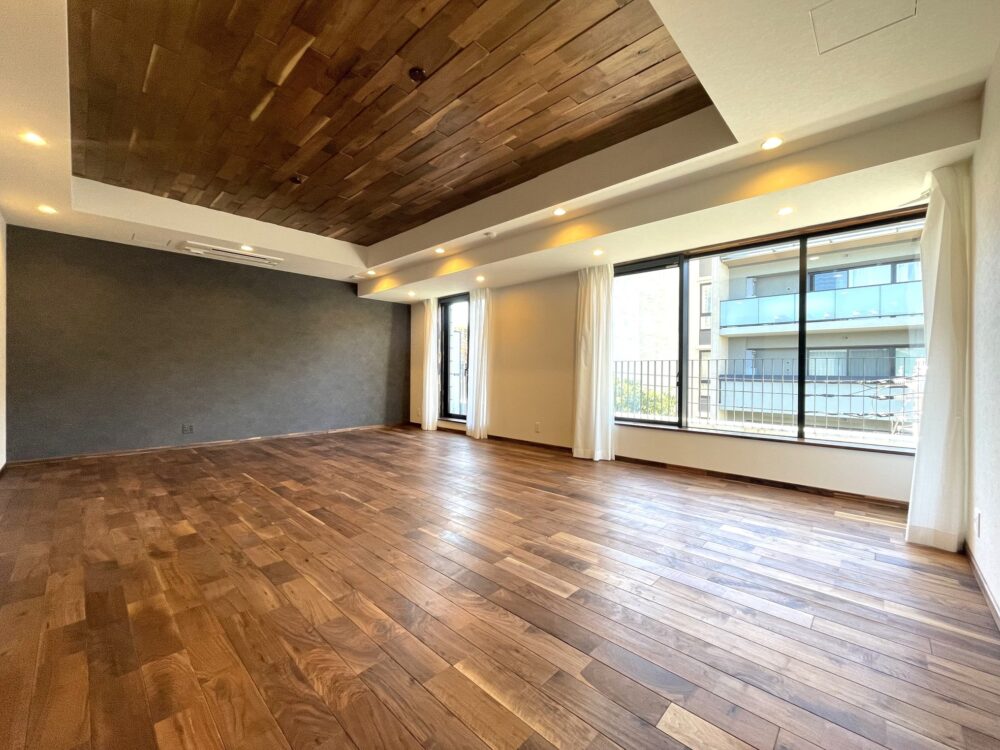 当物件は三菱地所の1棟丸ごとリノベーションの第1号物件でした。外観、共用部、専有部すべてを三菱地所が2016年にリノベ済みです。全戸200平米超のプレミアムな住戸で構成されています。